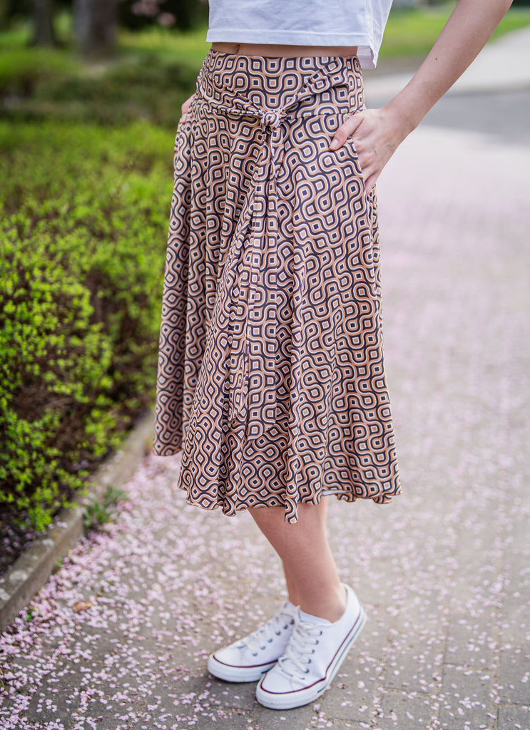 Midi sukně - puntík na hnědé, poslední kus XS-S