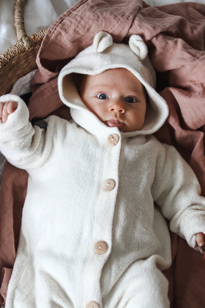 Teplý overal s kapucí BIO - vanila beránek