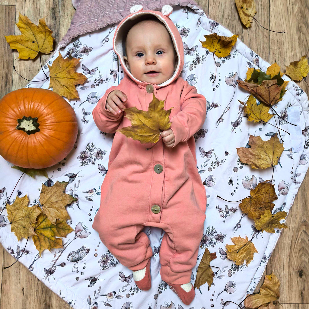 Teplý overal s kapucí BIO - růžová