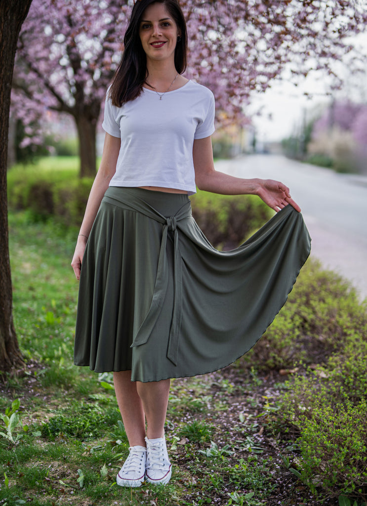 Umělé mléčné hedvábí je měkký, příjemný, hebký materiál, který se dokonale přizpůsobí vašemu tělu a zároveň vám umožní pohyb bez omezení. A víte co? Tato sukně se nemačká, takže můžete zapomenout na starosti s žehlením!