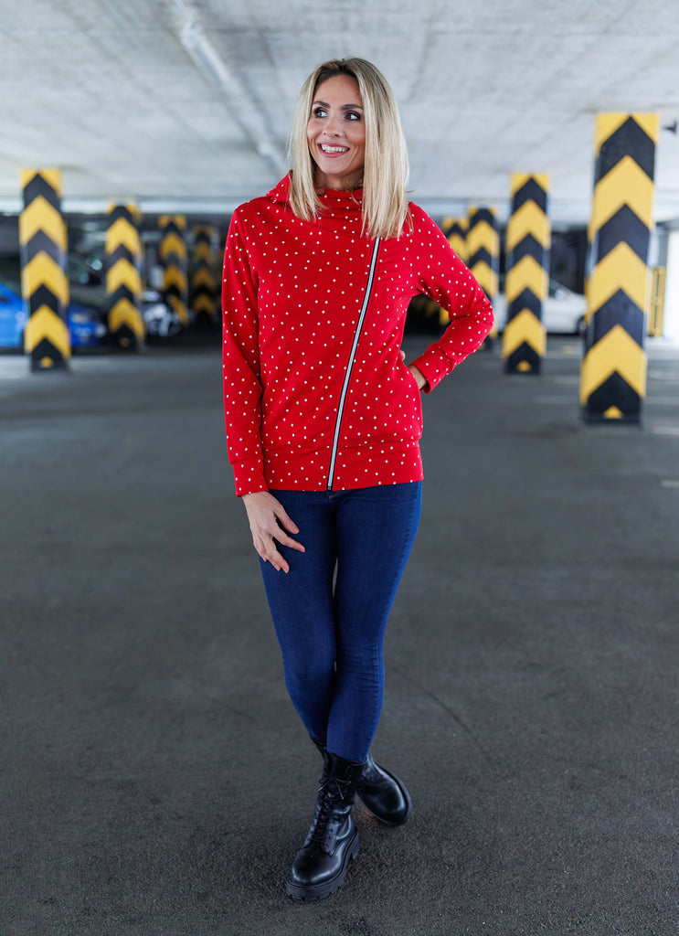 - Šitá s ozdobným špirálovým zipsom, ktorý je elegantným doplnkom celej mikiny