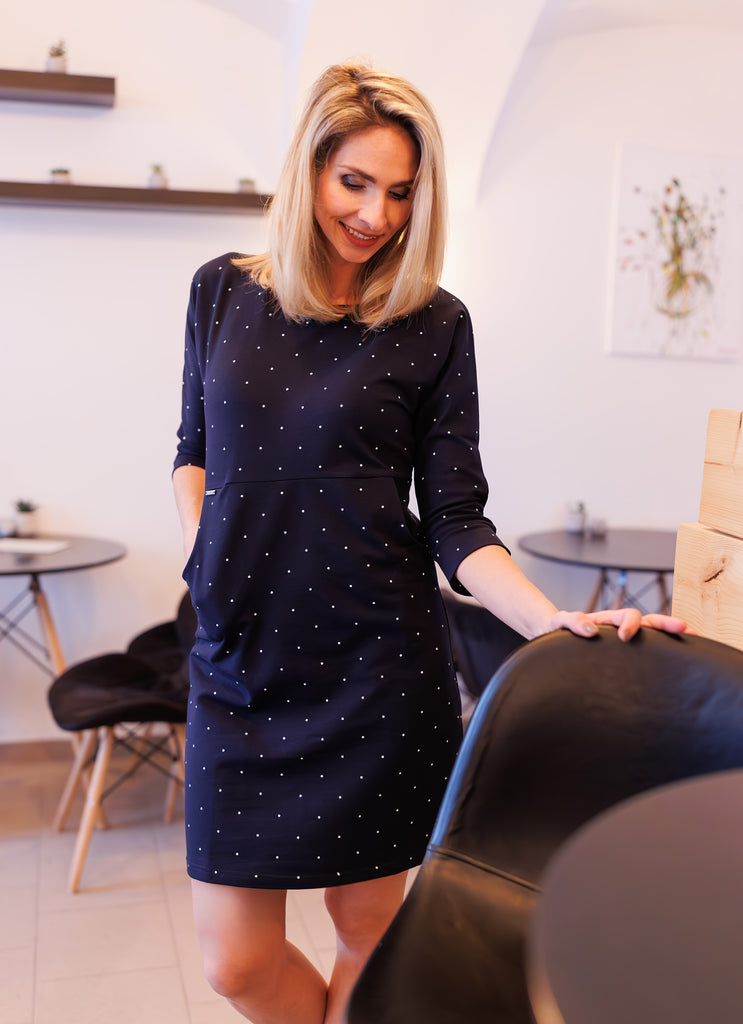 Mikinošaty - bodka na tmavo modrej, posledné kusy L, XL