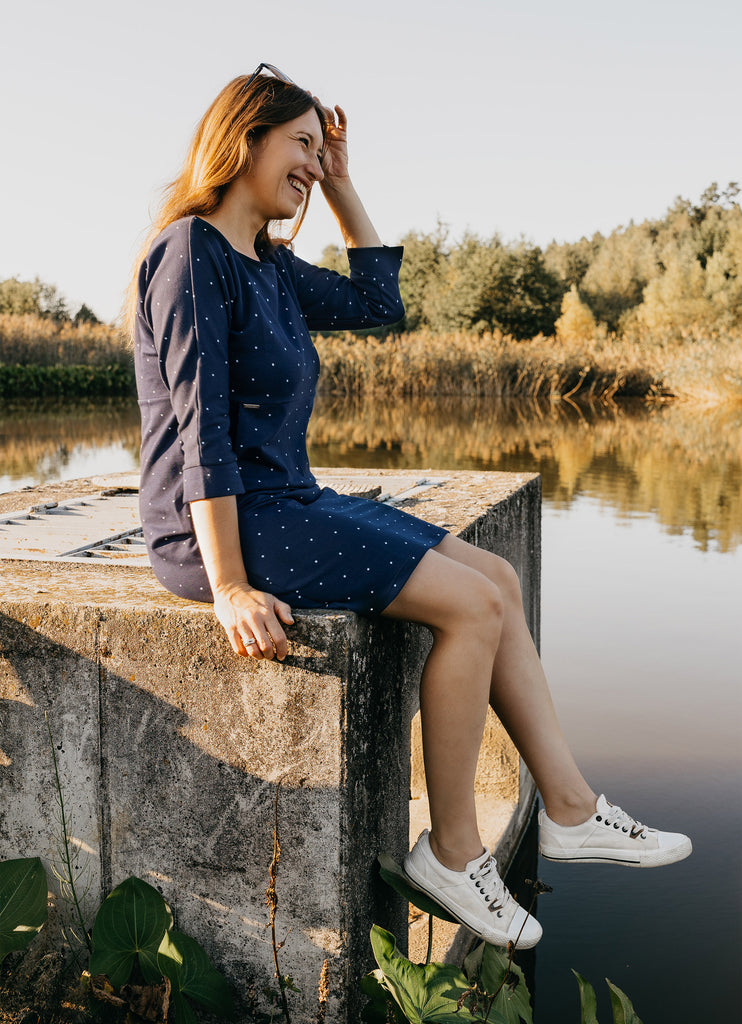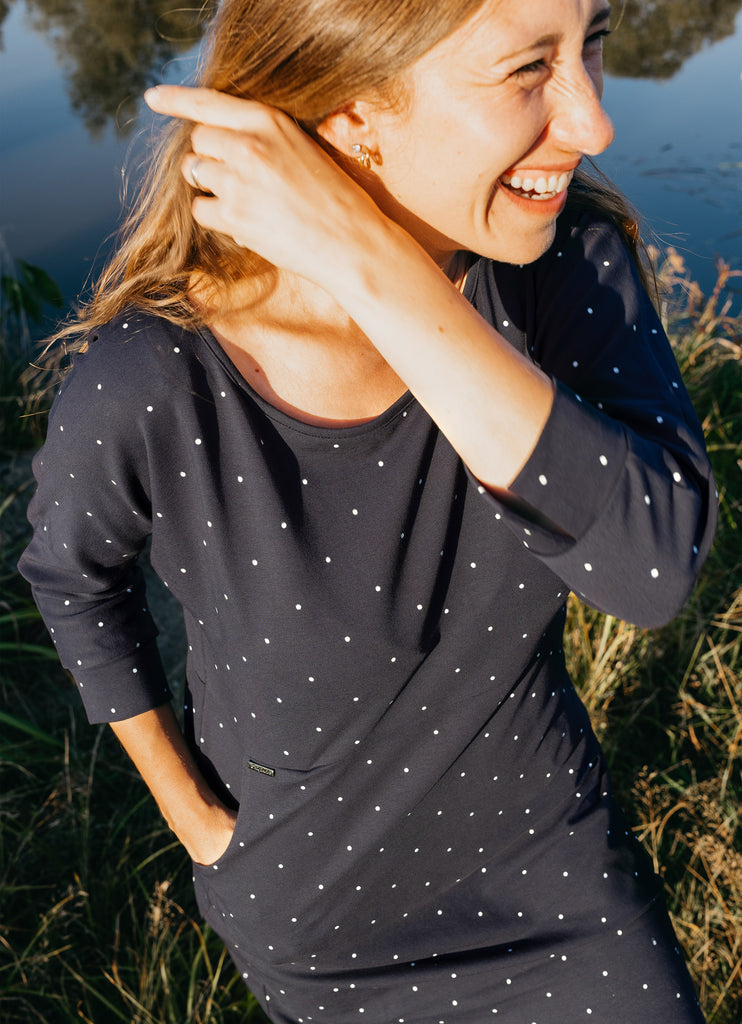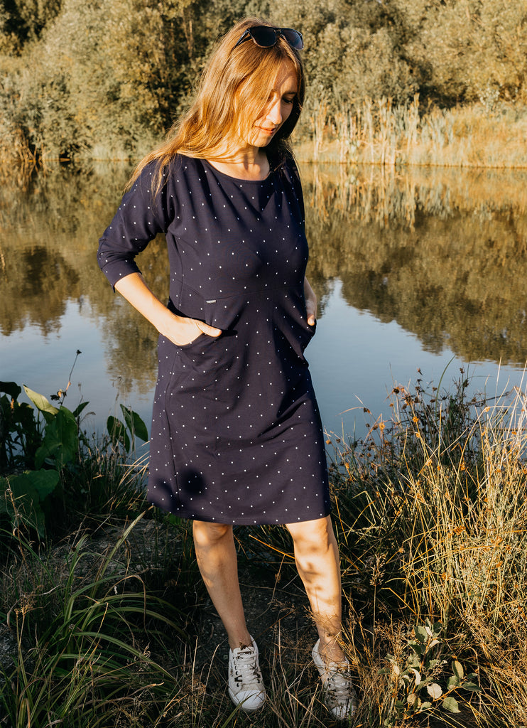 Mikinošaty - bodka na tmavo modrej, posledné kusy L, XL