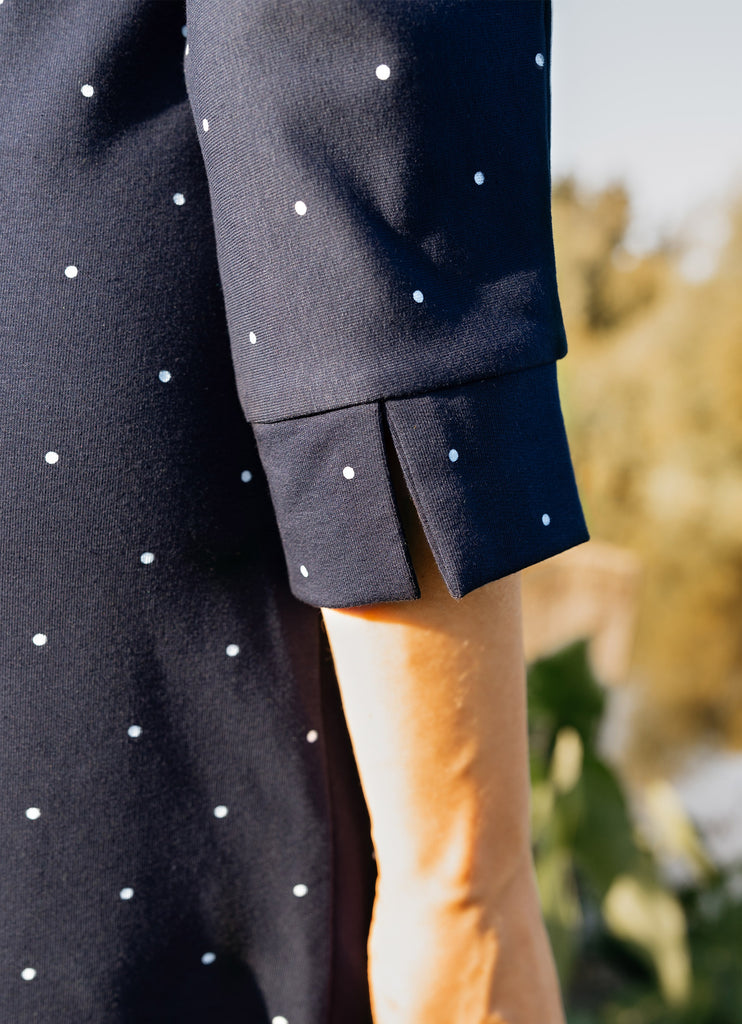 Dlhšie rukávy s manžetkou do rozparku dodá zaujímavý detail šiat, nechýbajú ani praktické vrecká.