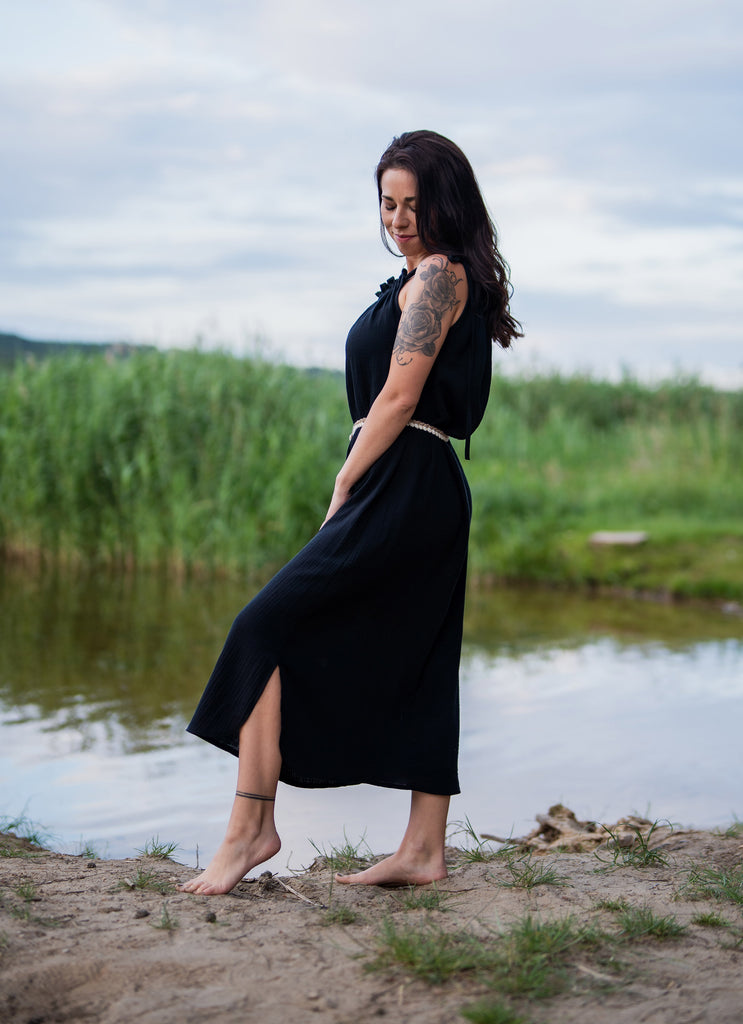 Mušelínové šaty LAYLA - čierne