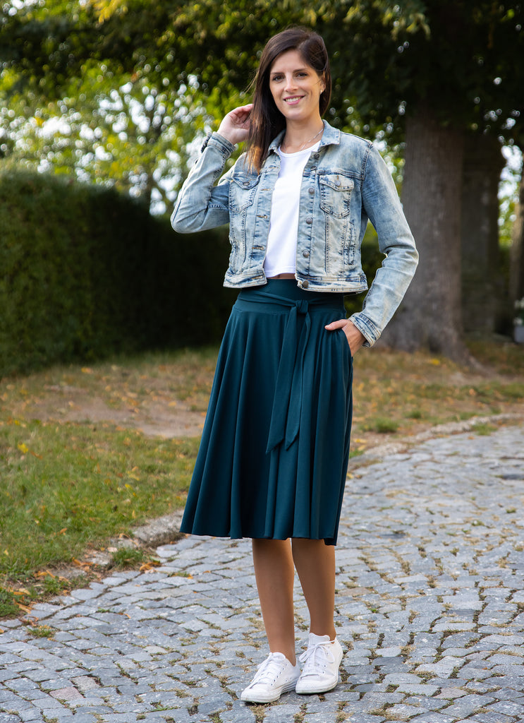 Umelý mliečny hodváb je mäkký, príjemný, hebký materiál, ktorý sa dokonale prispôsobí vášmu telu a zároveň vám umožní pohyb bez obmedzenia. A viete čo? Táto sukňa sa nekrčí, takže môžete zabudnúť na starosti s žehlením!